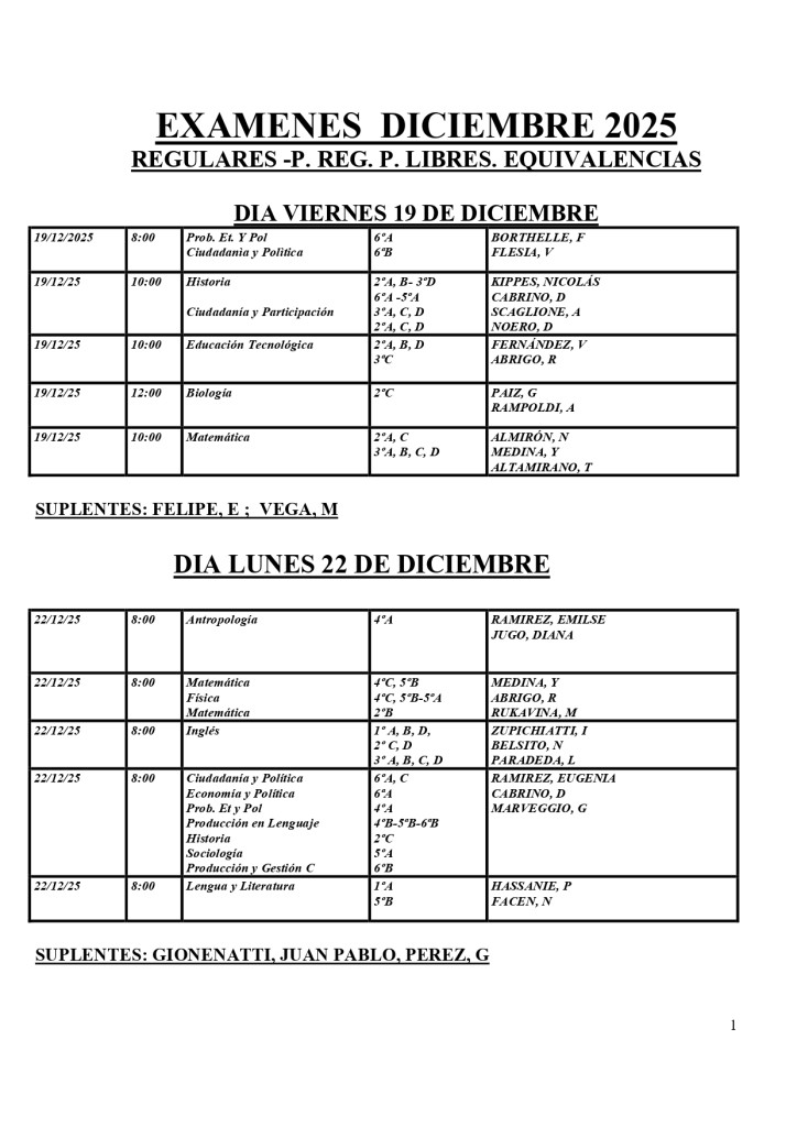EXAMENES DICIEMBRE 2025 REGULARES -P. REG. P. LIBRES. EQUIVALENCIAS View Larger Image Gaston Mascherin2025-12-09T13:29:18-03:00diciembre 9th, 2025|Nivel Medio, Novedades|